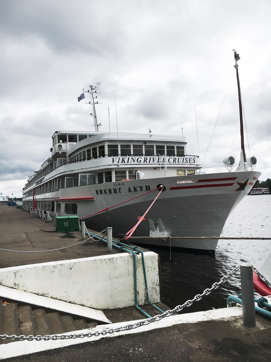 We decided to go for a walk along the waterway on which we were moored. We weren’t able to identify it as it was labelled in Russian on maps.me! We got pretty soaked before lunch, but we did manage to chalk up about 4000 steps. We have found that our walking can be quite limited on cruises. We had a nice restrained salad for lunch.